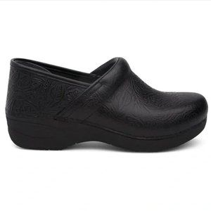Dansko XP 2.0 Floral Tooled Clogs Size 40 EU Black Leather Shoes Slip-Resistant