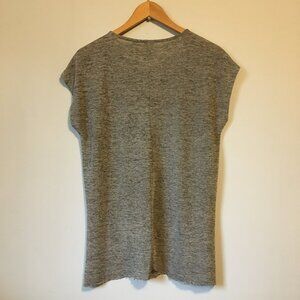 Very good preowned condition marled black and tan knit, shimmery tank/muscle sleeve top by Dantelle. Made in Turkey, this is perfect vacation wear or a comfortable evening classic to slip into. The unfinished hems give it a modern edge. Shimmers under the light as you move from room to room.
