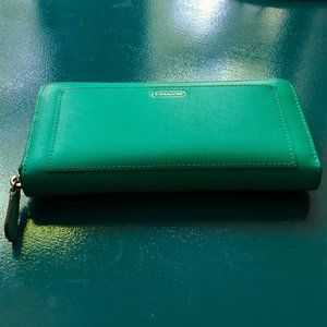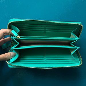 Darcy Accordion Zip Wallet (Leather) in Brass/Jade (Gold/Green)