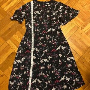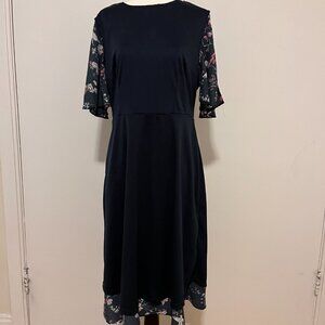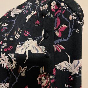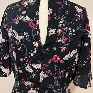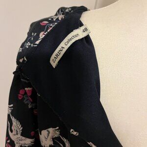 Dark Blue Crane & Blossom Print Midi Dress – Size 48 (fits like a L)
