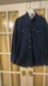 Stylish dark blue denim shirt with button-up front and chest pockets.