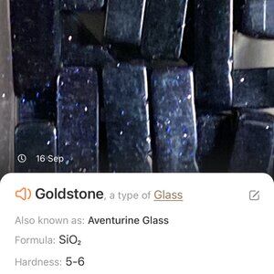 Sun Sitara (goldstone) is actually glass, but not made by tossing glitter into molten glass! It's much more complicated than that. Italian monks in 17th Century Venice were trying to "make" gold out of copper, and Goldstone was produced.