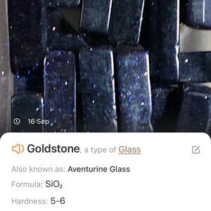Sun Sitara (goldstone) is actually glass, but not made by tossing glitter into molten glass! It's much more complicated than that. Italian monks in 17th Century Venice were trying to "make" gold out of copper, and Goldstone was produced.