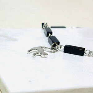 14 mm x 5 mm dark blue goldstone rectangular beads, 20 mm silver alloy "Slim Cat" pendant