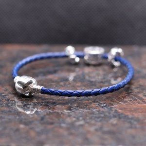 Dark Blue Leather Bracelet with Sterling Silver Barrel Clasp - BRAND NEW