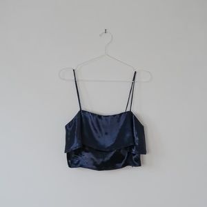 Deep silky blue. Spaghetti straps. Zipper on the side (hidden)