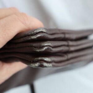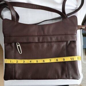 Dark brown leather shoulder bag. No designer tags. It has a few minor call-outs, but it's still a beautiful purse.