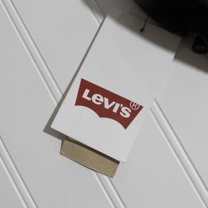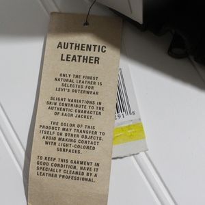 Unused with tags. Brown Levi jacket in authentic leather with zip up front and sleeves. Button pockets on either side with 2 slit pockets. Jacket is medium but will fit S-M.