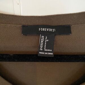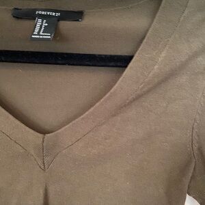 Dark green Forever 21 long-sleeved v-neck top featuring slight ribbing for a flattering fit. Only worn a couple times - color doesn't suit me, EUC.