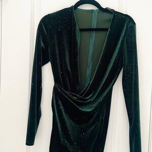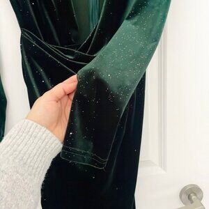 Dark green sparkle midi long sleeve dress