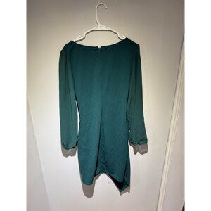Dark Green Women’s Wrap V Neck Bodycon Mini Puff Long Sleeve Dress Ruched SZ L
