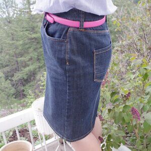 New dark jean skirt ,by Esprit,#94107,size 34 waist .Says size U.S 8,has a lot of stretch ,and slip in the back.