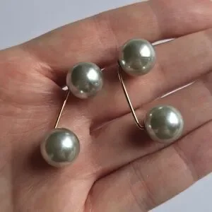2 New double faux blue-gray pearls cinch pins