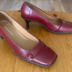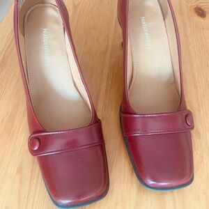 Dark Red Heels - Closed Square Toe - Leather Upper