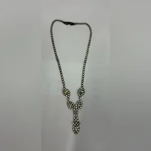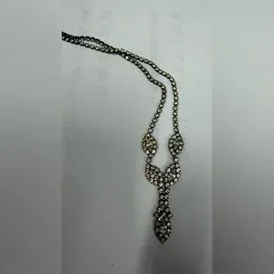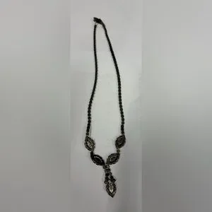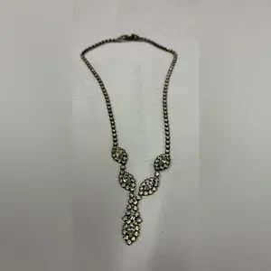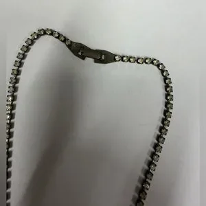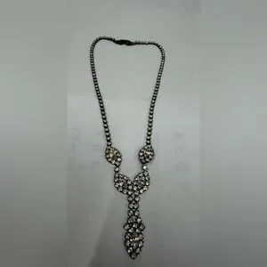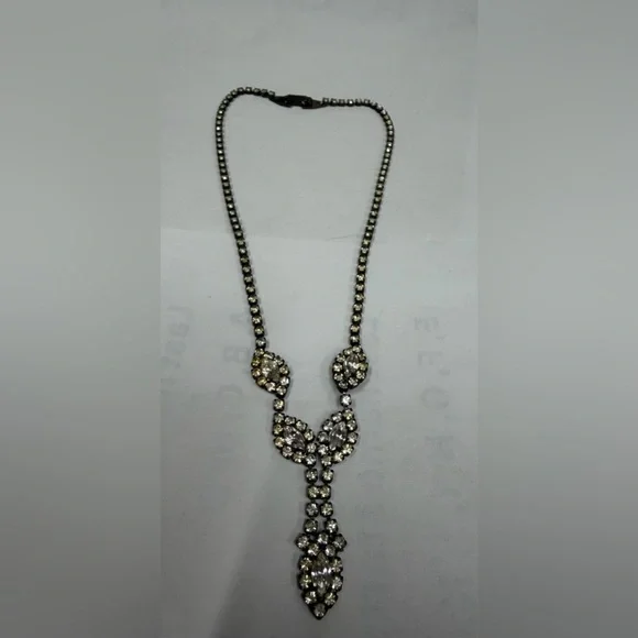 Dark-colored, rhinestone necklace with floral-like shape & fold over clasp