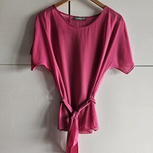 Dark Rose Sheer Short Sleeve Tie Front/Back Top