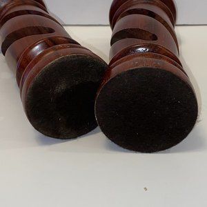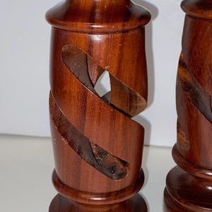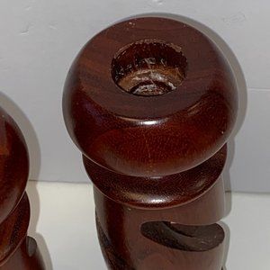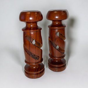 Dark Wood Twisted Tapered Candle Holders Pair Vintage