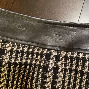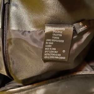 This very nice skirt is new, The tag is on but not the price. There was part of a two pieces suits. I bought this around 2003. The Skirt was too large for me and I brought it to my mom’s to adjust it, which she never did :) Now It’s still too large and I don’t work in an office anymore:) It’s brand new but it as mark on the faux leather by staying too long on hangers. There is pictures of it. For the rest this is a very nice piece with a good quality lining. It’s a nice piece to wear as it is comfortable.