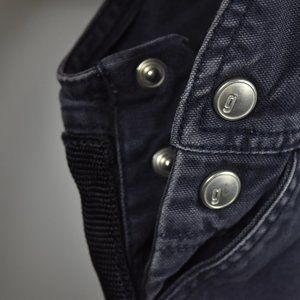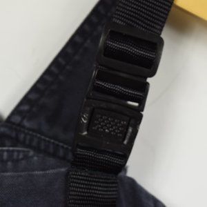 Dark blue cotton overalls with a duck in a plane design on bib pocket