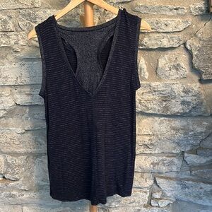 Active wear knit top. Dark blue with mini stripes. Has a racer back insert. It is loose fit. Very good condition.