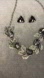 Dark gray blackish chrome crystal rhinestone necklace earring set