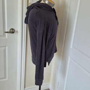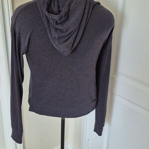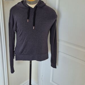 Stylish dark gray hoodie featuring black drawstrings. Perfect for casual wear. In New Condition