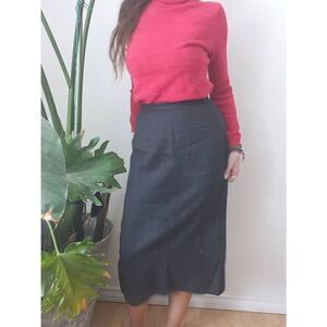 Dark Grey Wool Vintage Skirt Secretary Office Corpcore Midi Pencil