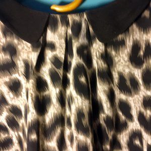 Every closet needs something leopard..Unique designer piece by the English designer Darling, a favorite of Kate Middleton. Silk look and feel with zipper down the bad. Detailed stitching al through the blouse. Is stated as a designer Large but more like a medium.