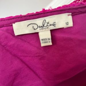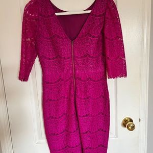 Darling London midi lace dress in vibrant fuchsia. US6 UK10. Worn twice. Back V neck with zip and 3/4 sleeve. Beautiful for wedding guest.