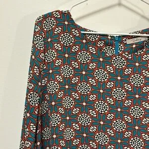 Beautiful print with 3/4 sleeve and ruffle at cuff. Polyester