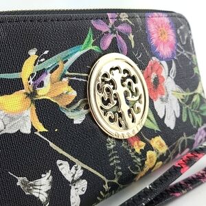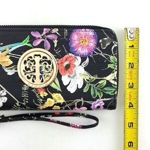 Dasein Continental Zip Around Black Multi Colour Floral Wallet Clutch Wristlet