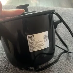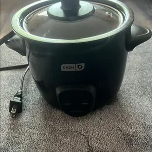 Compact black mini rice cooker by Dash. Perfect for small spaces. original price 99 dollars never used