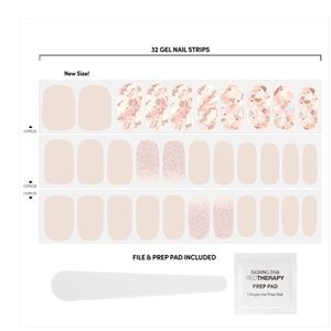 32 gel manicure strips (20 base color, 12 accents), Prep pad, Nail file