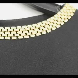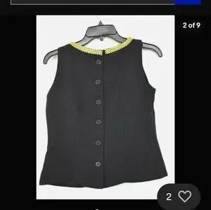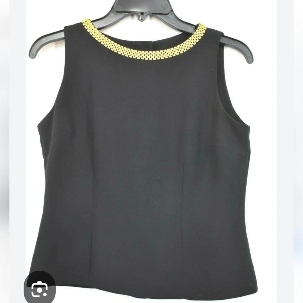 This chic black sleeveless top features stunning gold accents around the neckline, perfect for adding a touch of elegance to any outfit. Ideal for both casual and formal occasions.