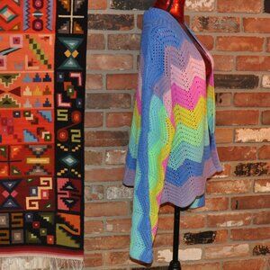 Davi & Dani Rainbow Zig-Zag Stripe Knit Open Cardigan Bell Sleeve L