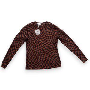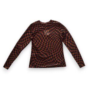 Davi & Dani Sheer Checkered Long Sleeve Top