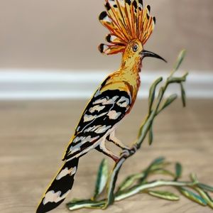 Brand new metal sculpture by Israeli artist David Gerstein. The art is called Hoopoe, Israel’s national bird.