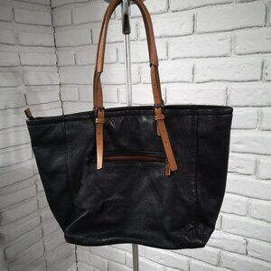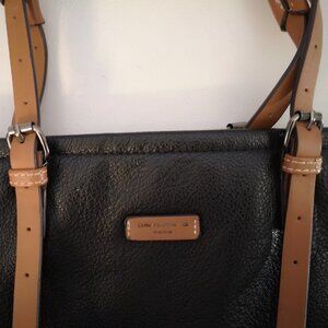 David Jones Black with Tan Adjustable Handles Zipper Closure Handbag