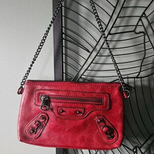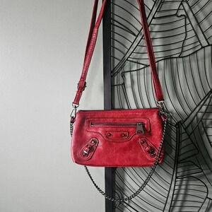 David Jones | Red Faux Leather Mini Bag City Style with Long Removable Strap