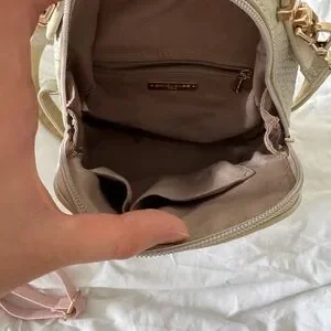 Stylish and versatile, the cream mini backpack is perfect for any occasion. Its elegant design and neutral color make it a must-have accessory.