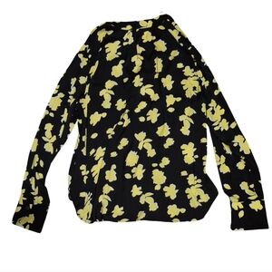David Lerner Rocker Floral Blouse Womens Small Snap Long Sleeve Black Yellow