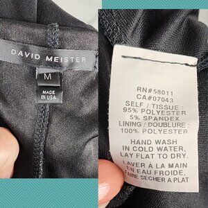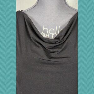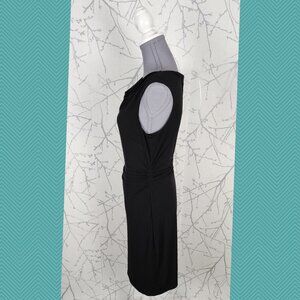 David Meister Black Stretch Knit Cowl Neck Ruched Sheath Dress