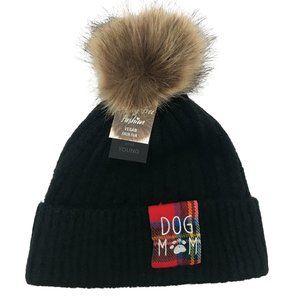 David & Young | "DOG MOM" Women's Knit Toque | Faux Fur Pom | Black | One Size