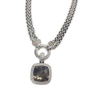 This necklace is crafted of a double wheat sterling silver chain that holds an Albion pendant composed of a faceted smoky quartz and is accented with pave diamonds. Pendant can be taken out