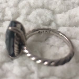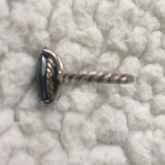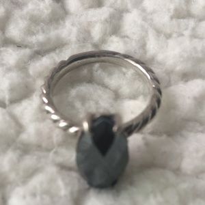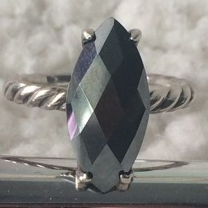 Showstopping marquise cut hematite stone with sterling silver band/setting. Inner band is stamped: © DY 925 (copyright David Yurman, sterling silver).
