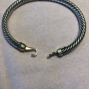 Cable Classic Buckle Bracelet with 14K Gold, 5mm David Yurman’s artistic signature, Cable began as a bracelet that he hand-twisted from 50 feet of wire. For the past 30 years, he has evolved the twisted helix into a myriad of designs. Sterling silver and 14-karat yellow gold Cable, 5mm wide Hook clasp Style Number: B04026 S4