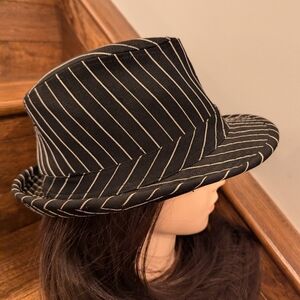 David & young men's Gangster fedora hat, pinstripes, 1920's style hat. Worn once for an event. Trace wear only. Excellent condition.