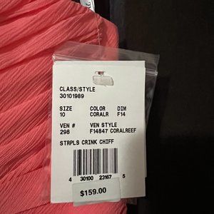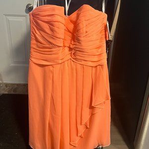 Bought around 2013 for a wedding. It is new with tags and never worn besides the initial try-on. Also has the bag with extra material.