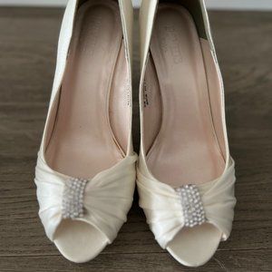 David's Bridal Dyeable Satin Wedding Heels with jewel embellishment. Never worn. Size 8