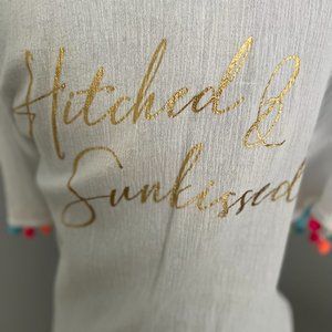 Semi-sheer "Hitched & Sunkissed" kimono bathing suit cover up is the essential piece to pack for a destination wedding or a beach honeymoon